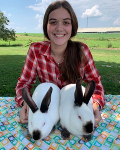 G19/G20-Hi, my name is Amelia Brewer. I am 18 years old and live in Elba and I will be attending Cornell University in the fall. My passions are showing dairy cows and raising Havana rabbits. In the past I’ve sold two dairy steers, a pen of meat chickens, and this is my second year selling meat rabbits. I’ve been the Master Rabbit Showman for the last 4 years. I enjoy raising and showing my Havana rabbits because I find having rabbits is relaxing and not as crazy as showing cows. Please consider purchasing my Californian market rabbits.