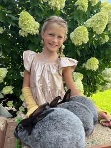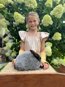 Meat Pen-4.0, 4.2, 4.8lbs My name is Tessa Mashburn and I’m the livestock youth rep for the rabbits. The rabbits that I breed and raise are champagne D’argents; they originate from the champagne region of France. Champagnes have a commercial body shape, full shoulders and deep hind quarters. They are solid black when born but slowly as they age, their coat turns silver. I chose the specific heritage breed because I love rabbits and they have a finer bone structure than common meat breeds. I’ve learned sustainability practices that help our soil from using every part of the rabbit. I hope through this experience as a Dutchess County 4-H’er, I’m contributing to even to a small part of sustainable food systems.